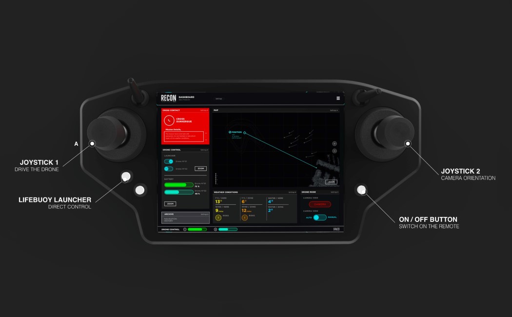 同时,这款高科技无人机,内部也部署有一个救人漂浮设备。当发现一个幸存者时,无人机便可以投下一个急救浮选设备。