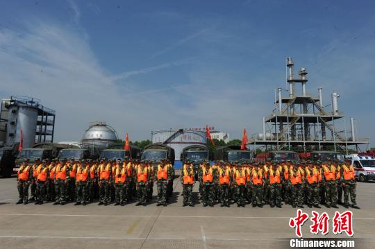 图为湖北省消防部队“陆海空”抗洪抢险救援战勤保障跨区域拉动演练集结现场。