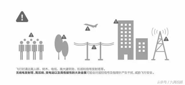 飞行前,首先要做的就是观察飞行环境,确保周边没有影响飞行安全的障碍物,如电线、电塔等;同时应当确认飞行地区是否处于禁飞区、限飞区,不要违反当地法律、法规;此外飞行区域应当避开建筑物和人群,以免造成不必要的麻烦。