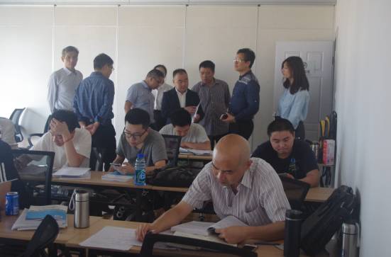 领导一行人参观了我公司的无人机理论教学场地和飞行模拟教学场地;并体验我公司无人机飞行模拟器。(此时学员正在进行理论考试)