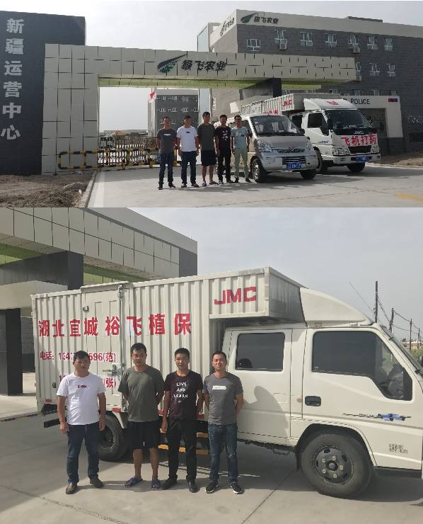 湖北宜城裕飞植保在新疆运营中心门前合影
