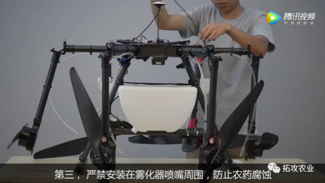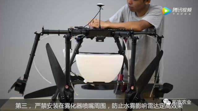在安装时,雷达不能安装在雾化器喷嘴的附近,防止农药对雷达产生腐蚀。
