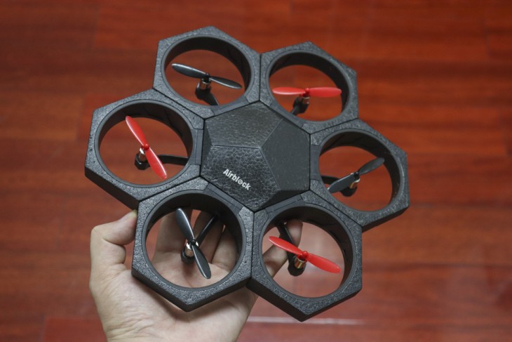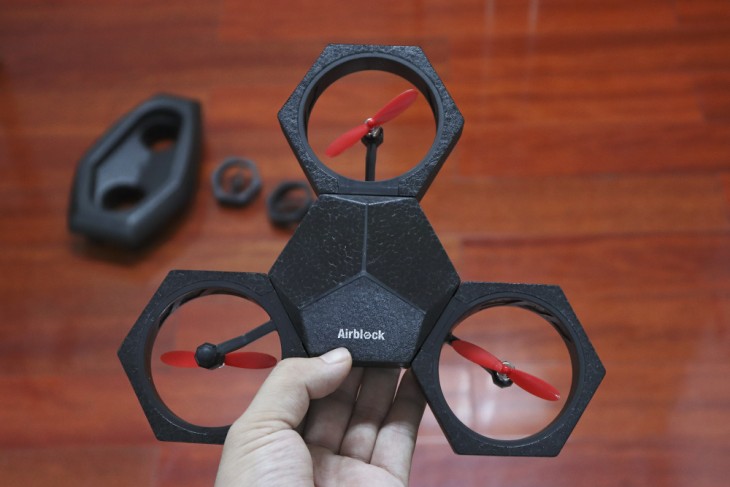 与想象中不太一样,Airblock无人机的安装过程异常简单,只需要将搭载螺旋桨的六个动力模块通过磁吸端口连接在主控模块上就可以了,下面我们就来看看Airblock无人机的各个组成部分吧。