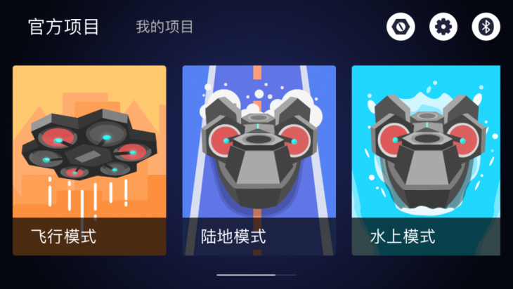 因为Airblock无人机有三种不同的组合形态,所以在操控上也会略有区别,而在不同的操控模式下还有一些特殊的动作设定。比如在无人机形态下,有“空中翻滚”、“空中晃动”、“水平绕圈”三种特定动作;在摩托形态下,则有“S运动”和“漂移”两种超酷的动作。