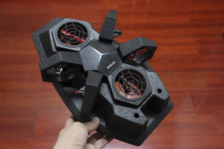 Airblock无人机的机身采用类似泡沫(EPP发泡聚丙烯)材料,使用这类材质作为机身的优点就是机身重量很轻,而且不易损坏,如果意外撞障碍物,也可以有效减缓撞击力,从而保护各个模块的安全。