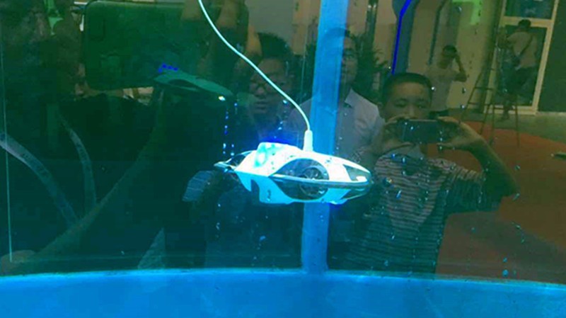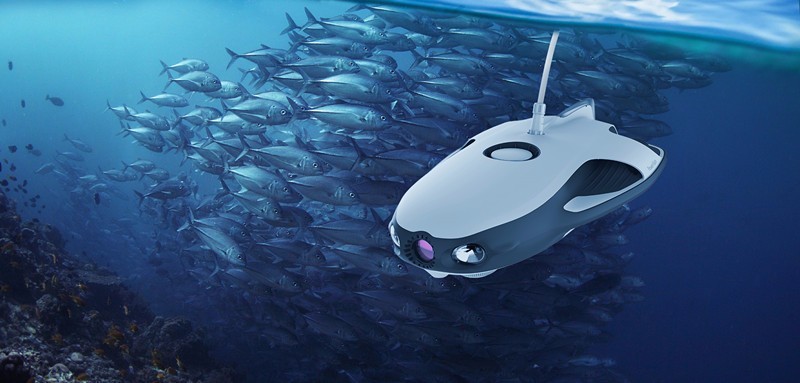 (潜水机器人可以让操作者以第一视角畅游在水中,简单的手机操作让人人成为水下摄影师)