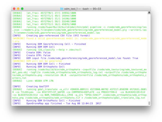 然后在项目的文件夹中(比如 odm_test_1),就能在 odm_orthophoto 和 odm_texturing 目录中看到对应的输出结果了。
