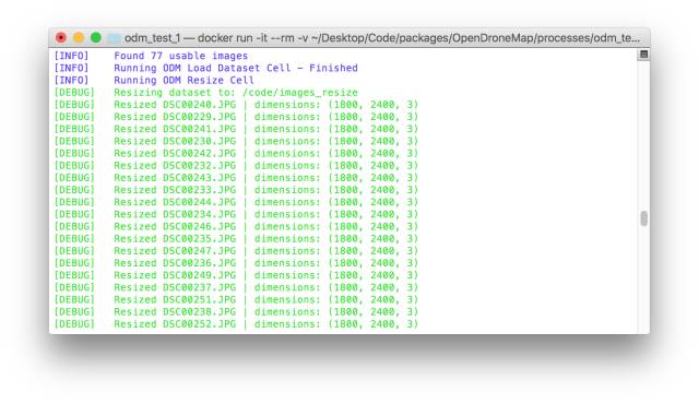 在航拍图像文件拷贝到 images 目录以后,打开 Terminal 并定位到项目文件夹(比如 odm_test_1)中,执行以下指令: