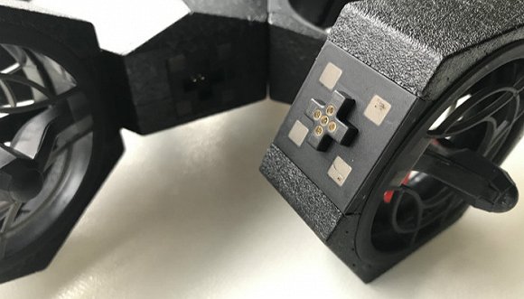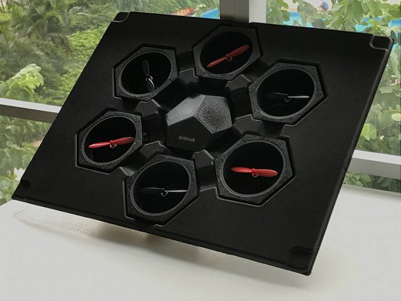 这个定位从产品的外观上就可以体现。首先,和一般的无人机产品不同,Airblock的所有主要零部件只有两种:主控模块和动力模块(螺旋桨)。两者之间通过磁力吸附连接,便于安装和拆卸。