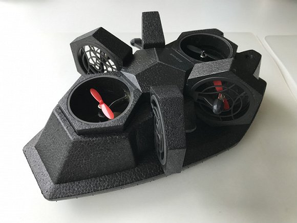 而在给动力模块安装护罩,以及加装了附送的一块壳体后,Airblock也会变成一个小型的气垫船,在应用中对应的操作模式是陆地模式和水上模式。在陆地模式上,Airblock可以做出S型运动以及漂移动作,但在水面模式中就只有基本的前进后退功能。陆地模式下,Airblock就有点遥控车的影子。
