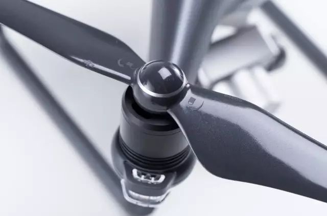和经典款白色的精灵4 Pro一样,快拆桨依旧通过弹簧来锁定。装上黑色桨叶的精灵4 Pro暗夜版真的是霸气逼人了。