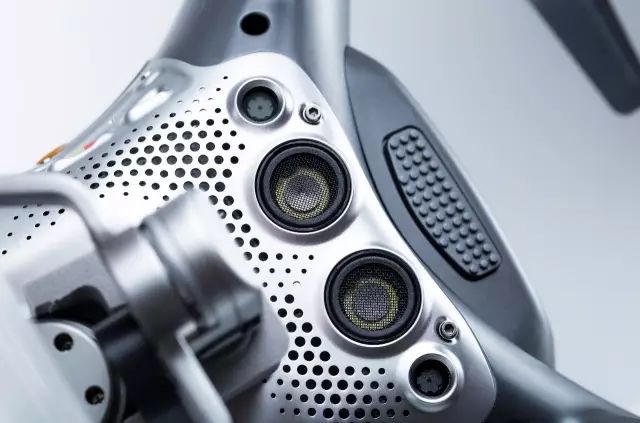在避障方面,精灵4 Pro暗夜版延续了白色版精灵4 Pro 5向环境识别与4向避障能力的优良血统:在四个黑得发亮的支架上,分别安装了双目视觉摄像头;在飞行器两侧,配备着红外线传感器;在飞行器底部,设置了超声波传感器及双目摄像镜头。