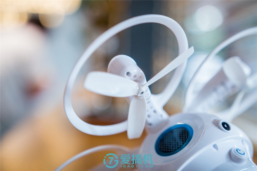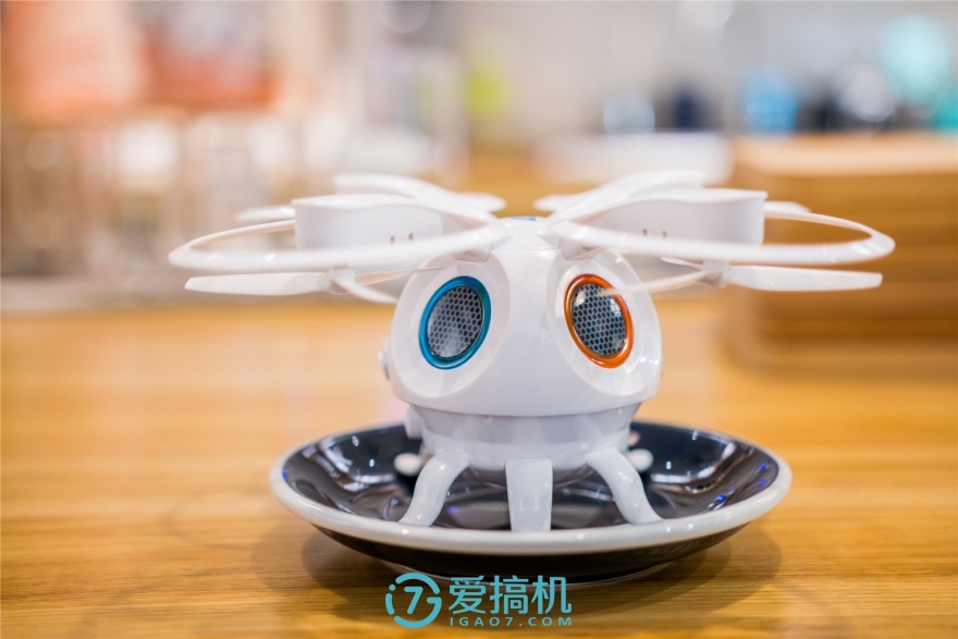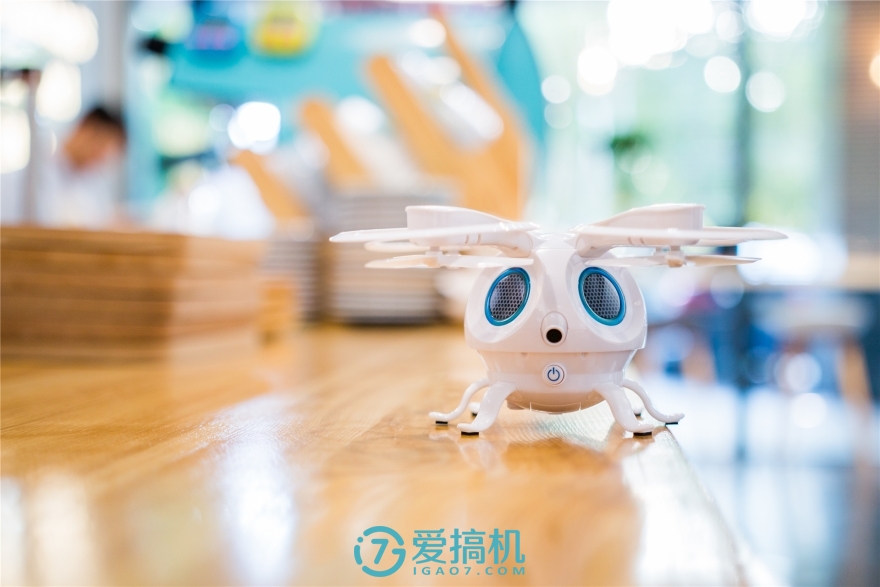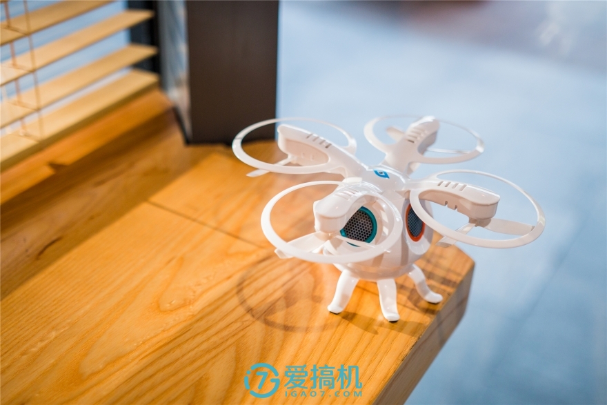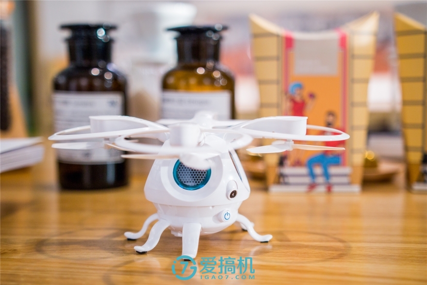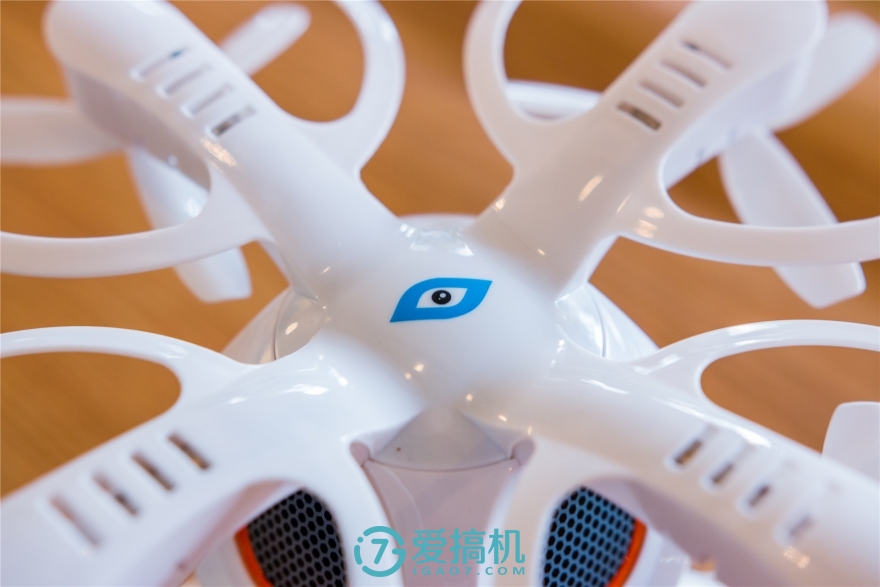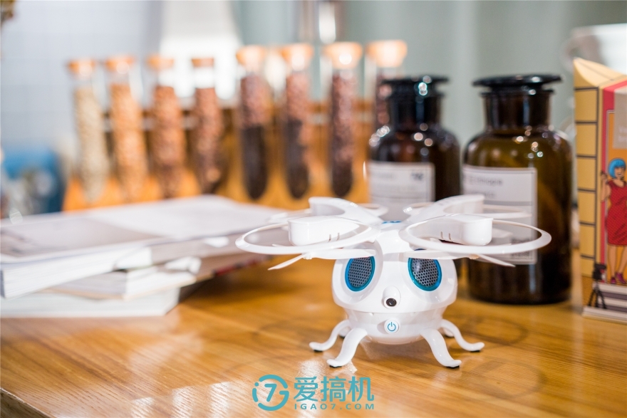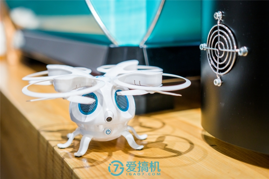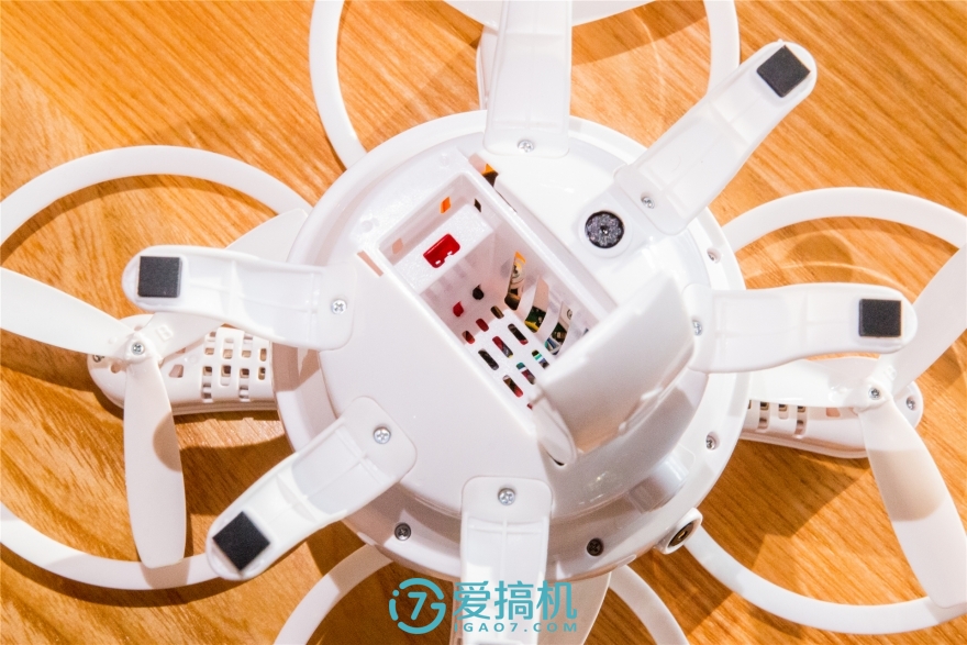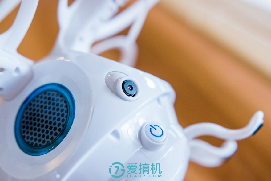 另一个角度是不是更萌萌哒呢,在这个角度好像不那么像乌贼,更像是只可爱的小蜜蜂?总之,不管它是乌贼,还是蜜蜂,这个造型都足够可爱,尤其是对于青少年来说。我们比较常见的传统四轴飞行器,通常都采用比较机械风的外观设计,以彰显机械性能,但乌贼智能飞行器作为一款面向12岁+青少年的产品,更多要表现的是科技带来的趣味性,而非绝对的飞行能力,因此可爱的造型也就不足为奇了。