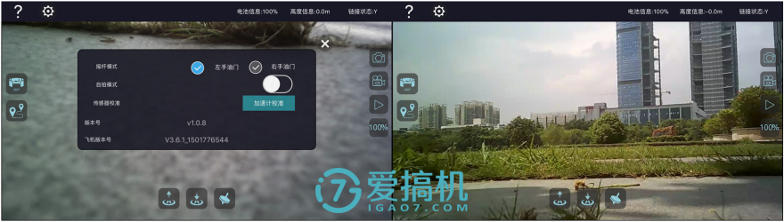 默认布局下,左手为油门,控制上升下降和左右旋转,右手为方向操控杆,控制无人机的前进后退和左右飞行轨迹。由于是通过触摸屏操控,因此在操作时候不要进行过大的动作。除了正常的操控飞行外,还有一个比较有意思的操控方式,既重力感应操控,手机只要前后左右倾斜即可对乌贼进行操控,不过实际使用感受一般,并不建议使用重力感应操控模式。