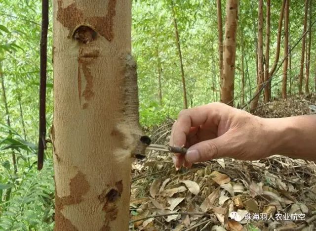 现阶段现有施药用的工具都是人工背的喷雾器与喷粉器,桉树都是种植在山上,人员进入打药非常困难,效率也很低,人工喷药一天最多打100亩左右,而且因为桉树长的比较高,打药都是向上打药,人工喷药始终包裹在药剂环境中,对作业人员的身心健康有很大损害!(备注:往往桉树每年需要打药3—4次)。