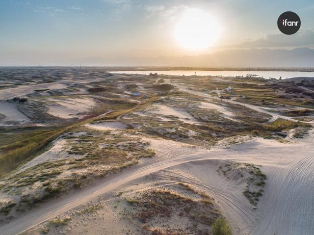 多样化的景观可以让飞手在长达数小时的游览中,总能找到自己感兴趣的拍摄对象。风景区内有 895 公顷的水域,1837 公顷沼泽地,带游客穿梭于各个景点的摇橹船、快艇荡漾其中。1515 公顷的半流动荒漠沙丘上既有人类穿行于沙漠的好搭档骆驼,还有充满激情的钢管越野车。