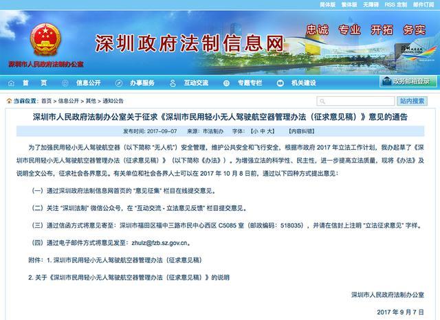 9 月 7 日,深圳市政府开始针对《深圳市民用轻小无人驾驶航空器管理办法(征求意见稿)》征求意见,有别于不少城市和地区「一刀切」的禁飞区划定方式,深圳市政府在征求意见稿的说明部分明确表态: