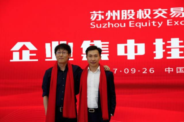 (由右至左:酷雅信息CEO华鸿儒、COO徐冬在挂牌仪式现场)