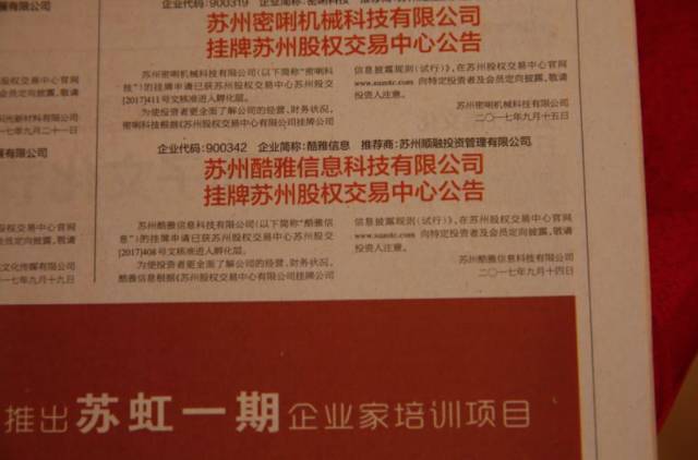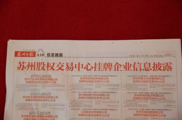 (酷雅挂牌新四板,刊登于当日《苏州日报》红头版面)