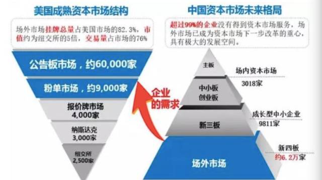 在我国资本市场中,主板、创业板、新三板属于公募(场内)资本市场,该板块上市企业可面向公众发行股票;四板则属于私募(场外)资本市场,该板块挂牌企业可以面向特定人群通过私募方式进行股权交易。