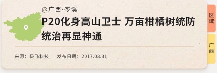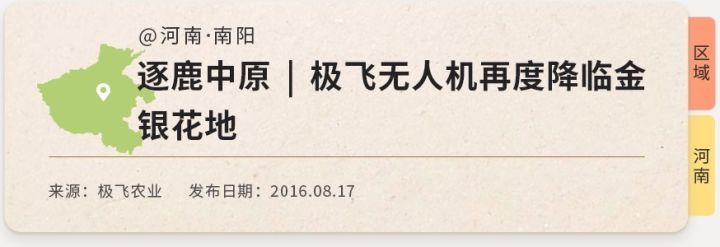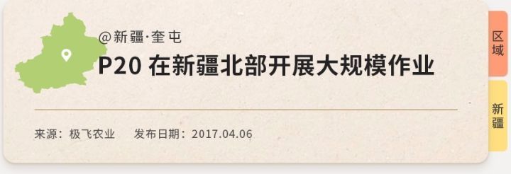 下面我们列举了部分极飞P20植保无人机服务过的区域,你可以点击卡片查看相关的推送,了解我们在当地的作业详情。