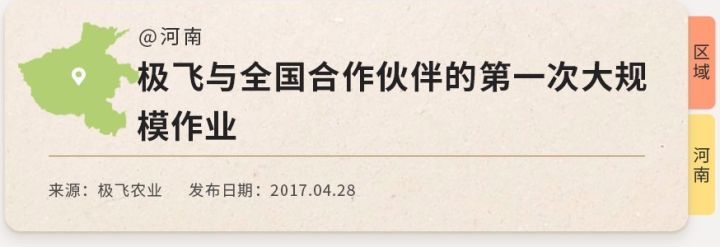 目前,极飞的植保服务在国内除了西藏地区之外,基本实现了覆盖。不仅新疆、河南有极飞两大植保服务直营中心,并且其他省份在合作伙伴的帮助下,都能找到使用极飞P20的植保服务提供商或飞防队伍。