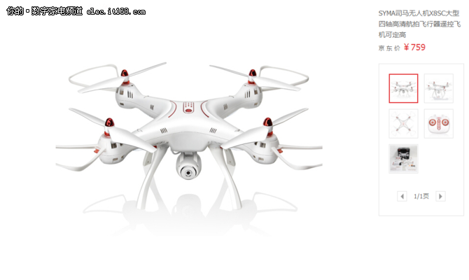 最后我们推荐的这一款无人机是来自SYMA这个品牌的。在京东搜索无人机,千元以下的各个档位上SYMA的无人机的销量都非常靠前,可以看出这个品牌在消费者中的口碑以及知名度都还是不错的。SYMA的这一款无人机型号为X8SC,是今天推荐里价格最高的一款了。在外观上这款无人机的造型已经与大疆那些高端无人机非常相像。这款无人机的脚架,保护架以及风叶都采用卡扣式设计,拆解安装都非常方便。配置上这款无人机的相机搭配200万像素摄像头,标配一张4GB SD卡。可以录制720P高清视频并支持实时传输。在功能上,前面无人机介绍过的气压定高拍摄功能、一键起飞,紧急停止以及遥控微调功能也都具备。在功能上也是非常的丰富,是一款值得购买的无人机。