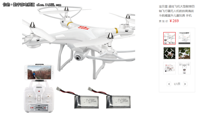 其实无人机并不都是大疆那种两三千元甚至五六千上万的,也有几百块的。不过就是这种几百块的无人机在做工设计以及配置上远不如大疆这类专业无人机。不过应付我们偶尔玩下,出门游玩带着是足够了。而且无人机是那类很容易新鲜劲过了就感到乏味的科技产品。买个几百块的,玩腻了在一边积灰也不会感到心疼。好了言归正传,今天给大家推荐的第一款无人机是来自宝贝星的。其实看这个品牌的名字也能感觉出来这个无人机更像是小孩子的玩具。其实说白了就是个质量还不错的遥控飞机配备了一个入门级别的摄像头,不过毕竟只要269元,还要啥自行车呢?虽然只是入门级别的无人机,不过这款无人机功能还是挺丰富的。这款无人机配备200万像素,支持手机遥控,还具有一键返航,LED夜视灯,气压定高等功能。这款无人机续航在10分钟左右,是买来尝尝鲜的不错选择。