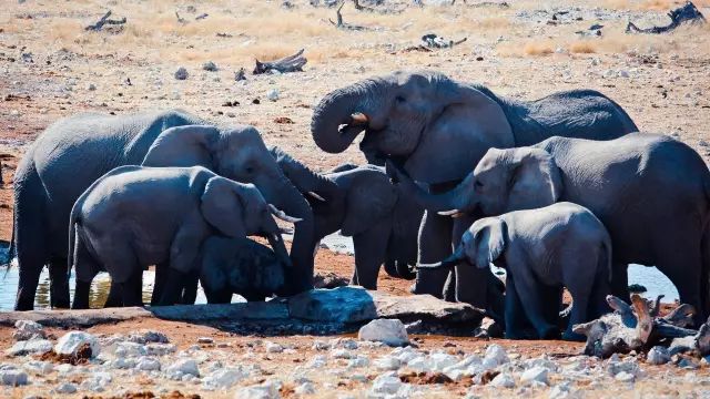 “北边,我们在野生动物国家公园里自驾Safari和大象狭路相逢,在荒漠间四处寻找原始部落。”