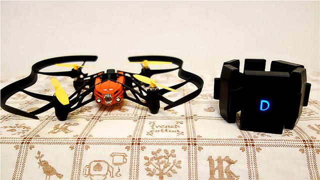 DTing灵动臂环可以控制无人机、弹跳车、机器人、VR眼镜等设备,甚至还可以模拟游戏手柄进行体感游戏操作。此次本人有幸使用DTing灵动臂环来控制Parrot无人机。虽然无人机品牌,我们熟知的仅有大疆,但是法国无人机厂商Parrot(派诺特)也具有着较高的知名度。此次试用的就是Parrot新近推出的minidrones系列迷你无人机。