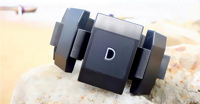 臂环主模块正面是一个字母D造型的电源开关,而且还自带LED指示灯。操作方法也很简单,轻按开关,稍等3秒钟后,指示灯点亮,蓝色LED长亮表明设备开启;再次单击开关,指示灯熄灭,设备关闭。字母D除了上述功能外,还是佩戴对齐标志,佩戴时字母D要与手背中指对齐。