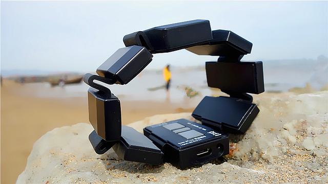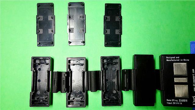 DTing灵动臂环共有8个模块,其中起关键作用的就是两个彼此相对的尺寸较大的模块:带电源开关的主模块和放置电池的电池仓。这两个模块间连接部分采用对皮肤零伤害的TPSIV婴用级弹性材料,而且中间隐藏着FPC排线。