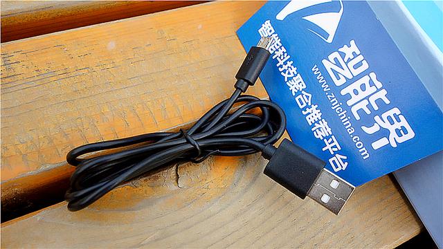 黑色的充电线采用标准设计,一端为标准USB公头,另一端为Micro USB插头,线长1米,完全够用。