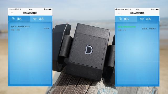 将DTing灵动臂环和BLAZE迷你无人机充满电后,就可以带出门去炫一炫了。另外,别忘记带上手机,因为没有DTing灵动臂环APP,是无法使用臂环操控无人机的。