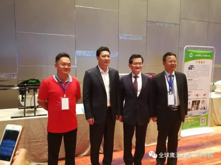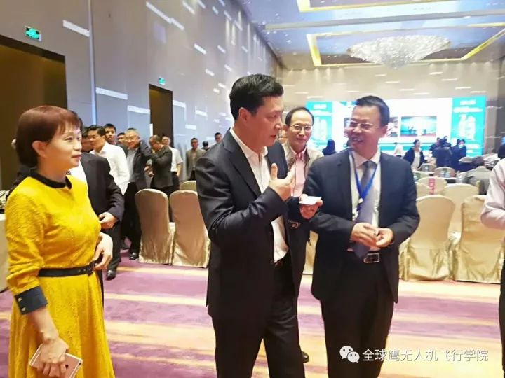 智航无人机董事长金良、深圳市龙华区委书记余新国、深圳市政协常委夏炜合影全球鹰董事长余景兵合影