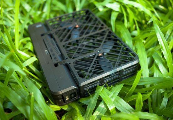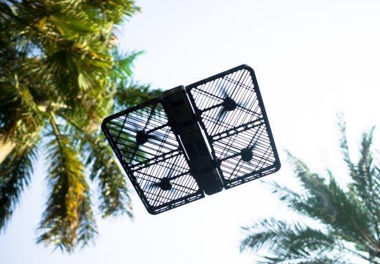 小黑侠是一款四轴折叠无人机,但与常见的将旋翼折叠隐藏至机身内的折叠无人机不同,小黑侠采用的方案是将左右两边的螺旋桨对折,这样设计的好处是操作快速且方便,一个动作即可完成折叠,不需要对四个旋翼都折叠一遍,折叠后比半张A4纸还要小。