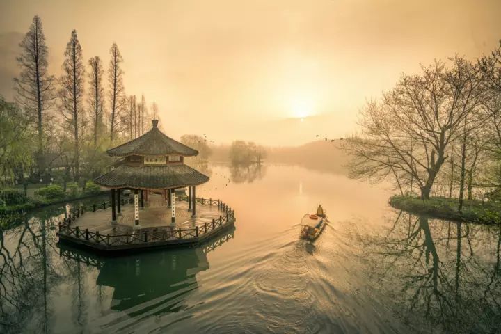 ②西湖翠光亭,运用同样手法,大光圈制造前景与画面层次,前后采用三分构图,主体采用中心构图。