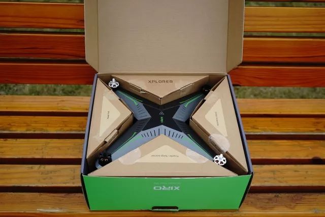 首先来看一下外包装。XPLORER 4K的包装和V版基本保持一致。黑绿的颜色搭配透出一股浓浓的科技气息,4K无人机的图像印于包装正面,十分的显眼。