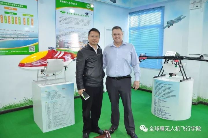 全球鹰无人机董事长余景兵和以色列Sky-Hopperpro公司运营总监Rony先生合影