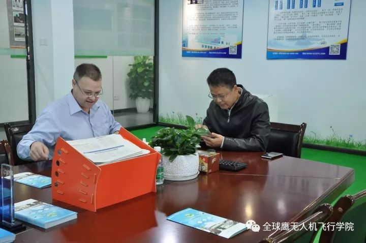 全球鹰无人机董事长余景兵和以色列Sky-Hopperpro公司运营总监Rony先生洽谈合作事宜