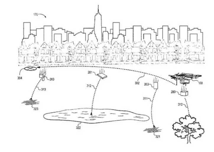 来自亚马逊的工程师Verge首先申请了这个专利,被命名为可预见性“无人机定向分解”。专利模拟了这个场景,当亚马逊的技术人员在电脑上查看超视距飞行的无人机遇到复杂天气或者来不及失控时候,在查看可安全分解空域后立即发出可自动分解的指令,力求给地面做到零伤亡。还可以自动迫降在树丛,或者池塘。