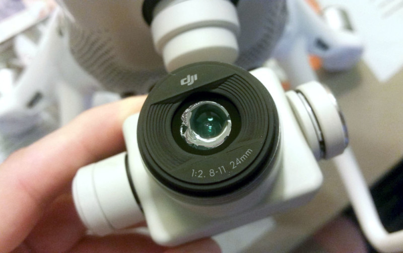 空拍机镜头附近的胶质溶化,却无损机体性能。