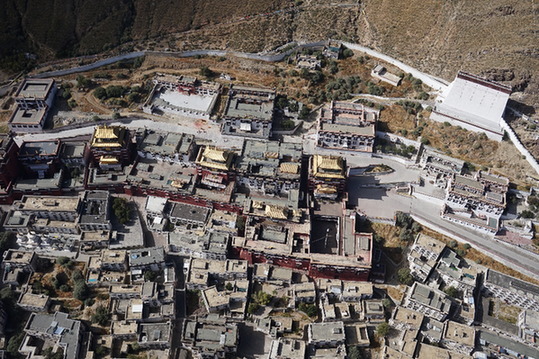 据了解,这次活动中,无人机遥感飞行为“日喀则市地质灾害高精度遥感影像图库建设”项目的前期数据获取工作打下了基础。图为扎什伦布寺无人机倾斜影像。图片来源:新华网)