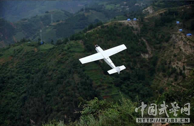 2015年4月,日喀则地区发生地震。4月27日16时,武警警种学院灾情侦查与快速评估作战分队已集结完毕,携带固定翼和单兵1号无人机共5架,于28日开赴日喀则灾区。此举实现了地灾信息三维可视化,为现场应急响应和指挥决策提供信息支撑。图为无人机在空中侦查。图片来源:中国军网