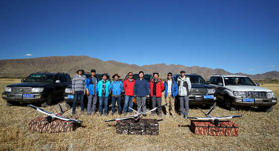 近年来,无人机在农业、电力、测绘、安防等多个行业广泛应用,特别是在世界屋脊上,无人机的作用愈发明显。2017年9月至10月,地调局航空物探遥感中心成功获取了西藏日喀则地区16个区县的高精度无人机遥感影像,首次成功在青藏高原地区完成无人机遥感作业。图为本次活动的工作人员及无人机。图片来源:新华网