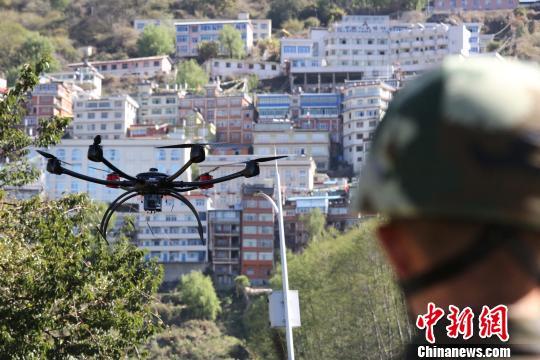 无人机在高原上执行任务,可以解决很多人类无法解决的难题。这种高科技产品,在青藏高原上没有高原反应。2017年4月11日,西藏公安边防总队聂拉木边防检查站运用KWT-X6M新型六旋翼无人机在樟木口岸开展边境巡逻任务。图为操作员操控无人机对樟木镇进行地质灾害排查。