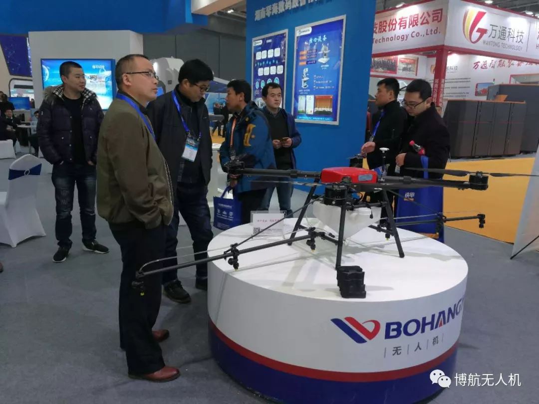湖南博航展出了自主研发的3WX4-10A电动四旋翼无人植保机,3WX8-10A电动八旋翼无人植保机两款机型。两款机型均载药量10L,配置博航自主研发的飞控系统,具备电子围栏,避障功能,密钥接入,智能管理平台,入云系统等,符合2018年国家补贴政策标准。博航无人机稳定性高,智能喷洒,运输方便,操作简单,深得广大客户的好评。