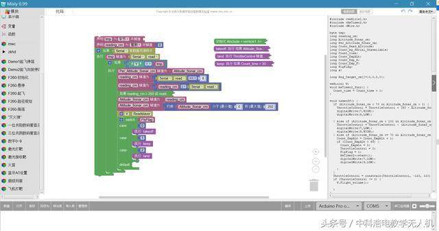 编程环境: 这款飞机支持图形化编程和C语言编程两种方式,选件里的调参器也可以直接设置飞行路径。对于学生来说还是比较方便的,简易的图形化编程适合编程刚上手的中学生使用,而C语言可以支持一些大学生完成课程设计,毕业设计;或者参加竞赛。