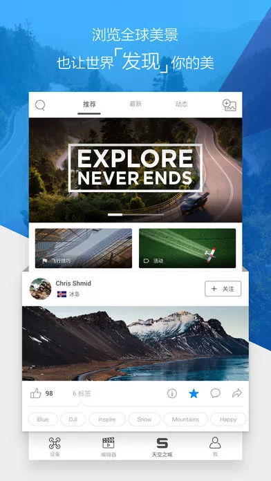 虽然本次推荐的APP都是第三方,但关于后期这方面,针对航拍还真的没有比DJI GO 4 更人性化的APP,毕竟是针对航拍领域,其他第三方做不到像DJI GO 4 这么熟悉用户,熟悉航拍。