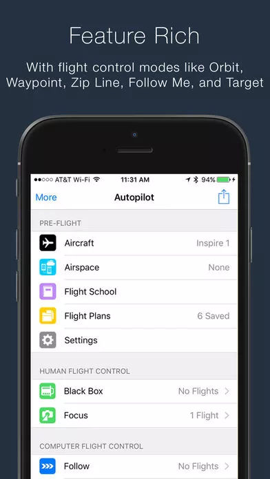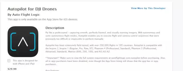 这是一个针对专业消费级玩家的非消遣向软件。专为那些真正想控制每个飞行细节甚至一切过程的玩家量身定做。软件中内带飞行学校,其中含有数百小时的飞行测试和与专业飞行员的飞行,能提高你的飞行能力。软件实现功能非常多,主要是通过设置自动和半自动模式,解放繁琐的操作。不过在软件的其他地方,倒是有不少有趣的,比如,无人机黑匣子,姿态控制,Zipline工具,Apple Watch支持功能和内置飞行清单检查等功能。